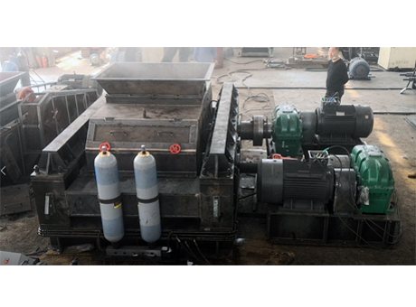 對輥破碎機通過輥輪進行破碎作業(yè)。物料由進料口進入輥子之間,通過擠壓作用破碎河卵石,兩輥輪之間有一定的間隙,兩輥輪間隙變大,物料出料粒度變大,在壓緊彈簧的作用下兩輥輪間隙變小,出料粒度變小。通過改變調(diào)整間隙,可以控制物料的出料粒度。